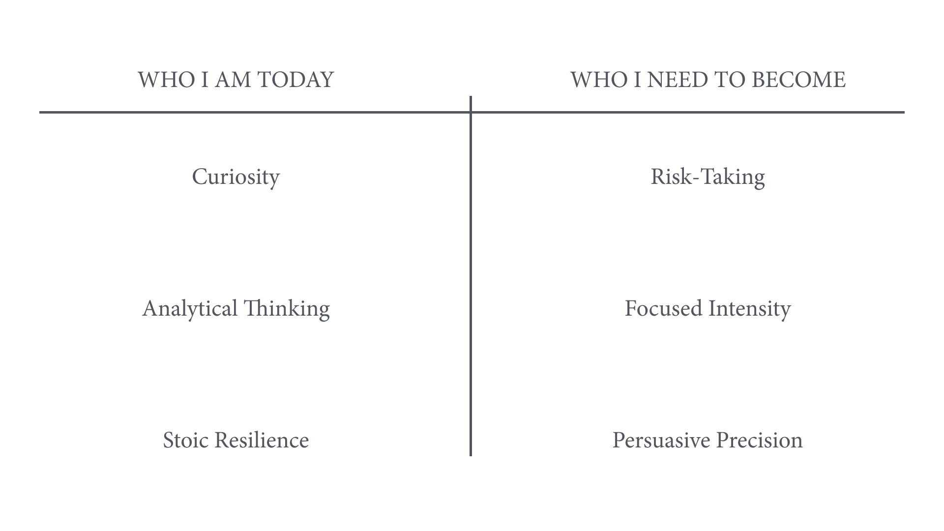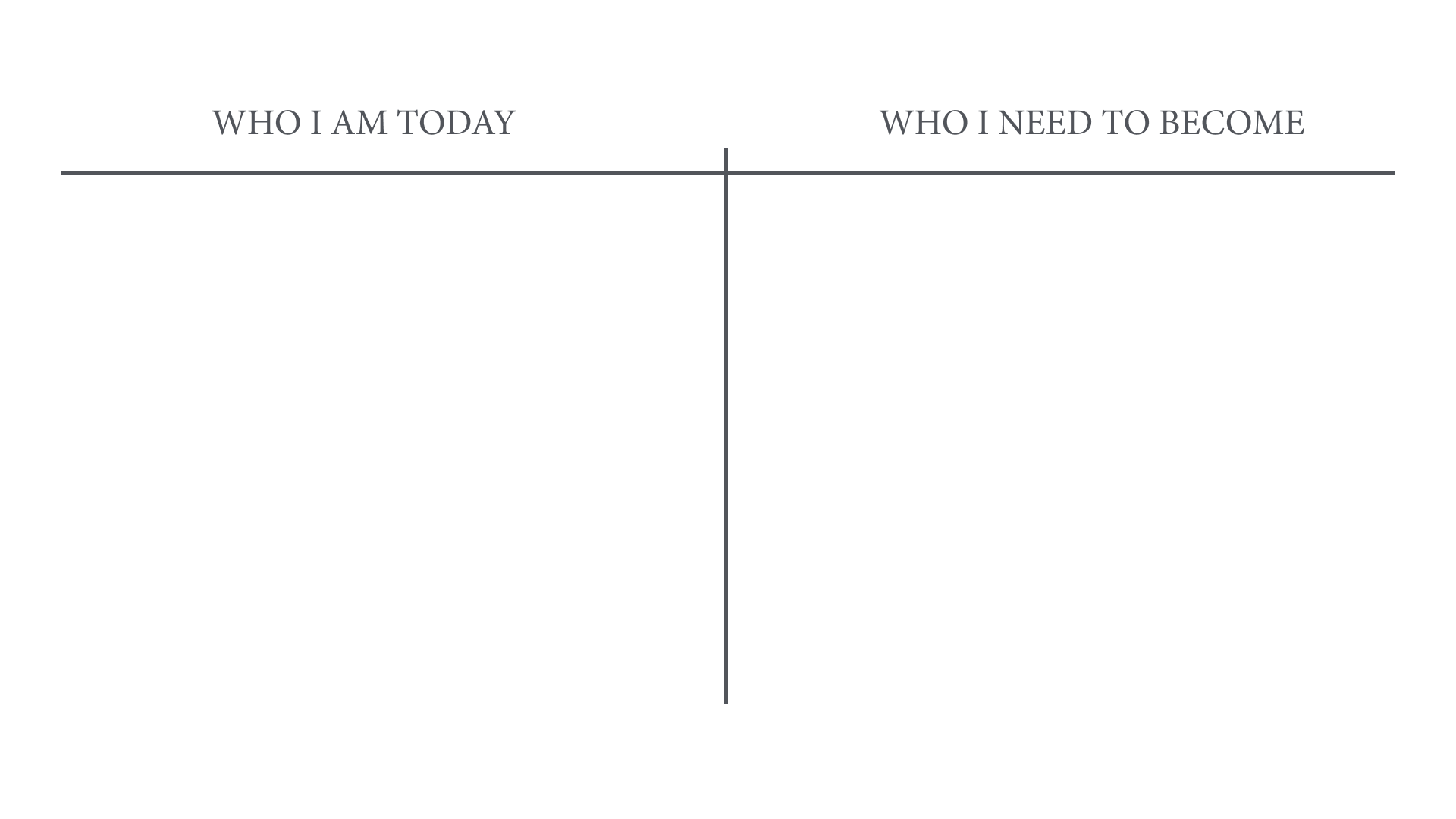 Right column: “Who I need to become”