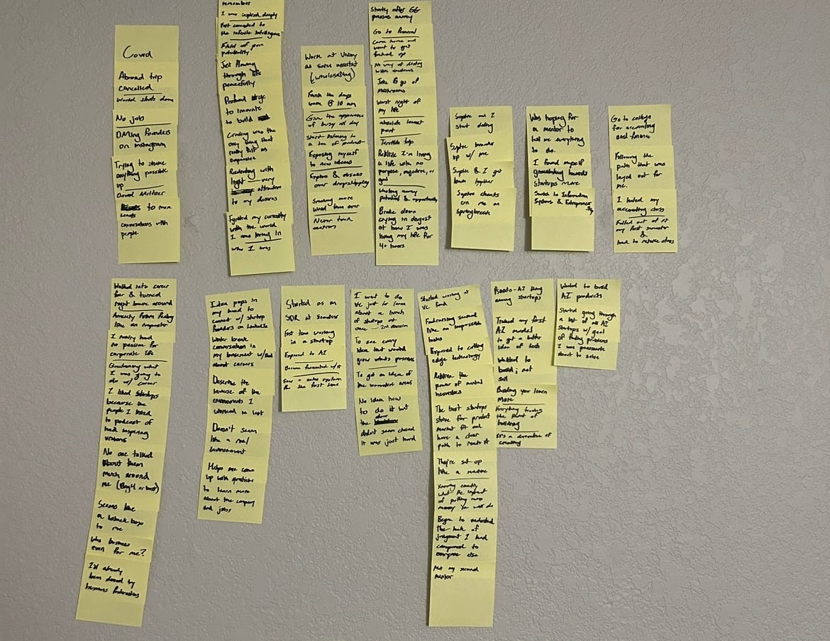 I tried an experiment. I literally storyboarded my entire career journey – everything I could remember, going back years.